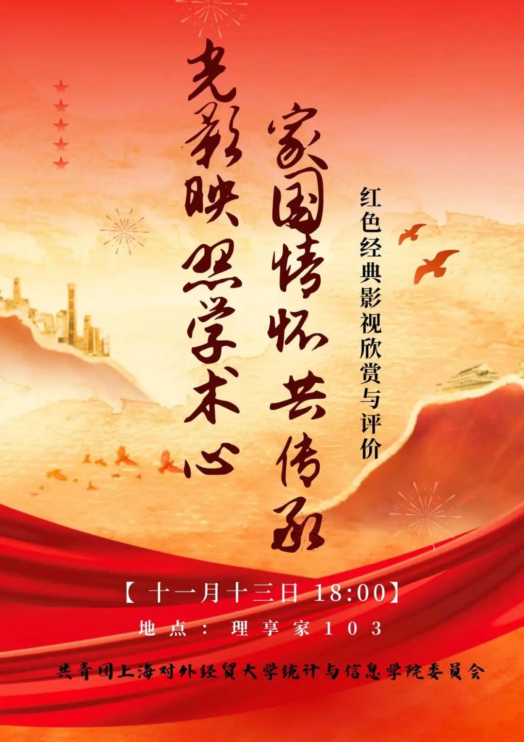 为传承红色基因,弘扬爱国主义情怀,展现新时代青年的风采,在中华人民共和国成立75周年的重要时刻,共青团统计与信息学院委员会现举办红色经典影视欣赏活动,一同观看经典红色电影《解密 》。