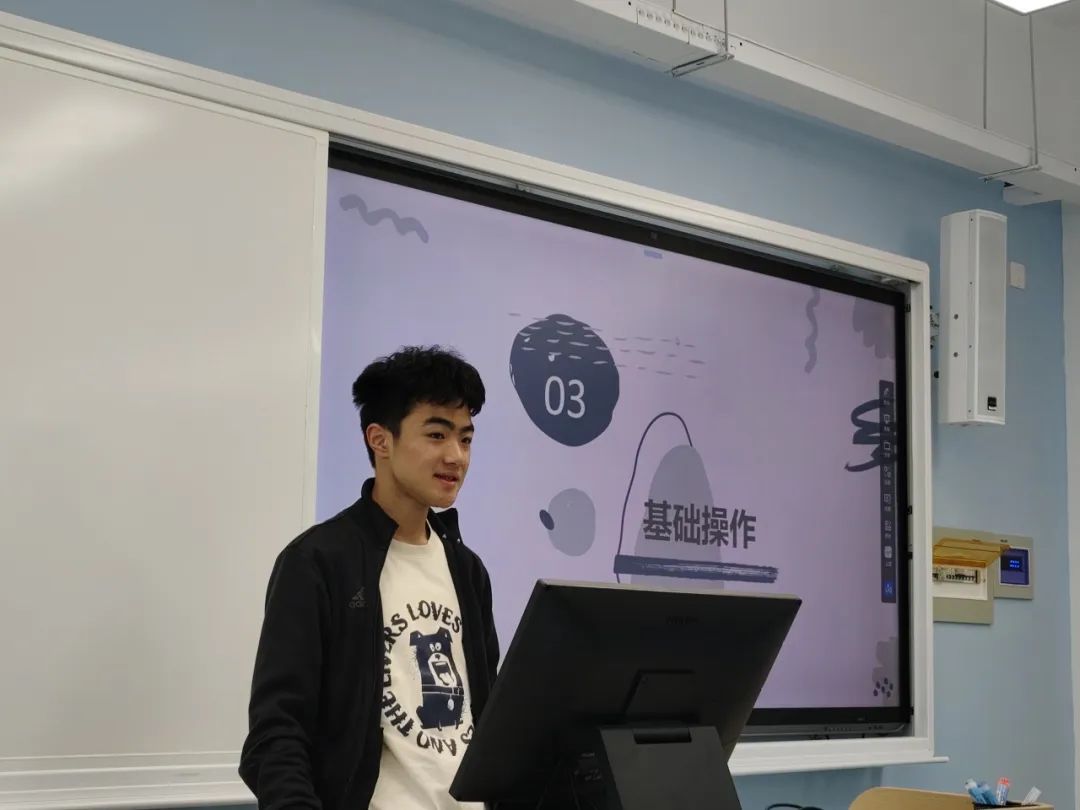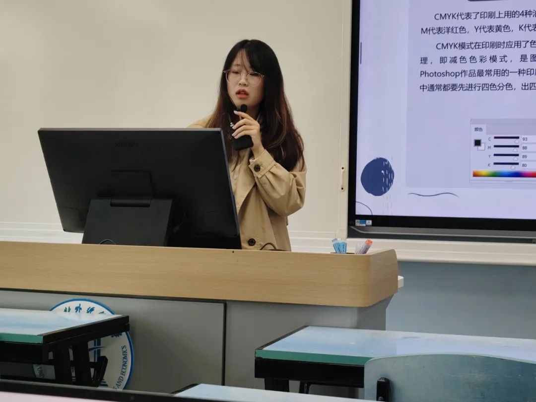刘柏衡通过实例演示PS基础操作,通过证件照换色、抠图去水印等指导学员如何操作达到理想的图片状态,他通过一系列节日活动宣传、社团宣传等不同类型的海报拓宽了学员的设计思路与设计方向,也提高了学员的审美情趣。