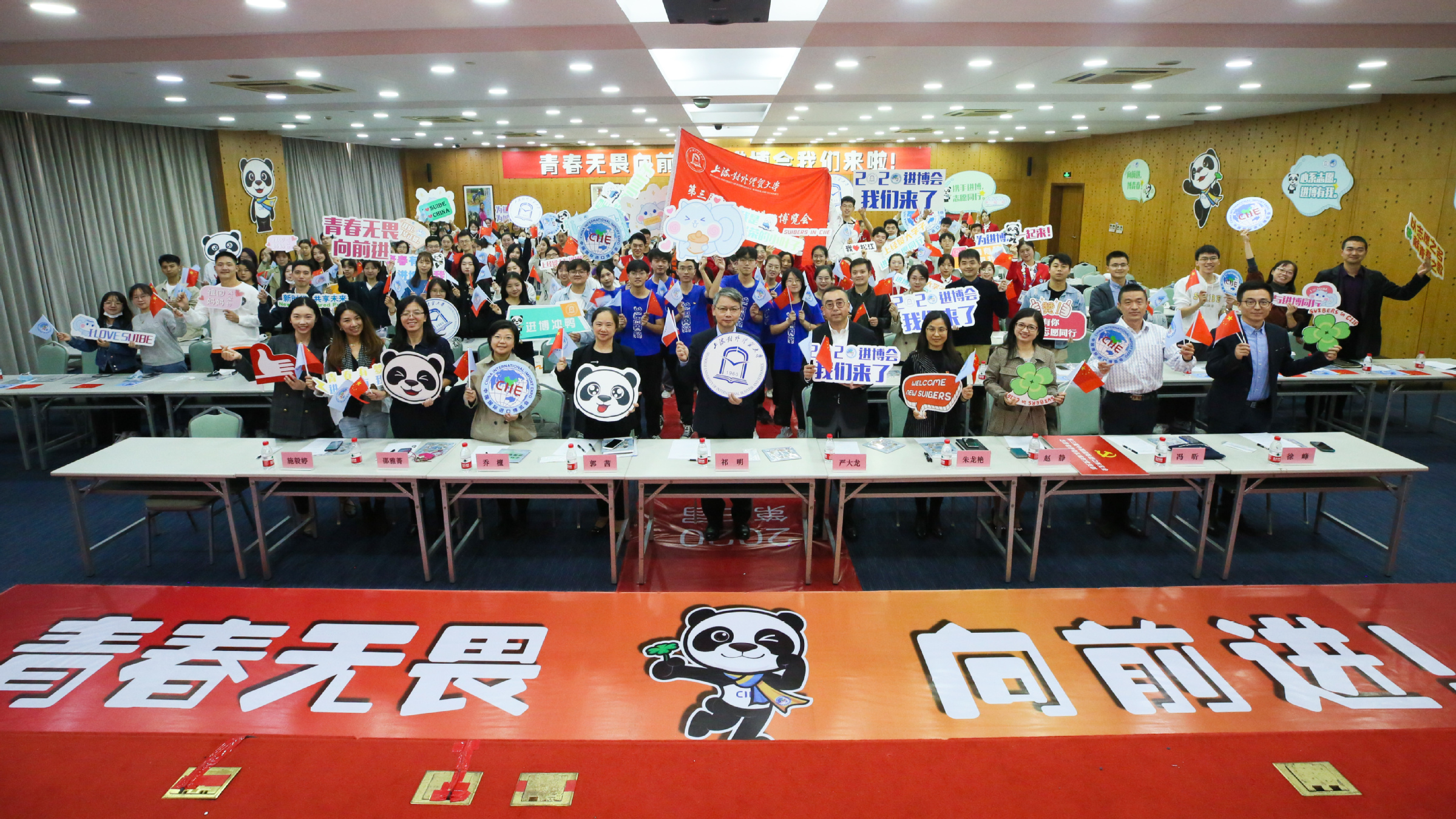 10月23日,必赢626net入口首页第三届中国国际进口博览会志愿者出征仪式在图文信息大楼526报告厅举行。校党委副书记、副校长祁明,党委组织部部长严大龙,党委宣传部部长郭茜,教务处副处长朱龙艳,党委研工部副部长乔檀,党委学工部副部长赵静,各学院团组织负责人以及全体110名进博会志愿者参加了出征仪式。