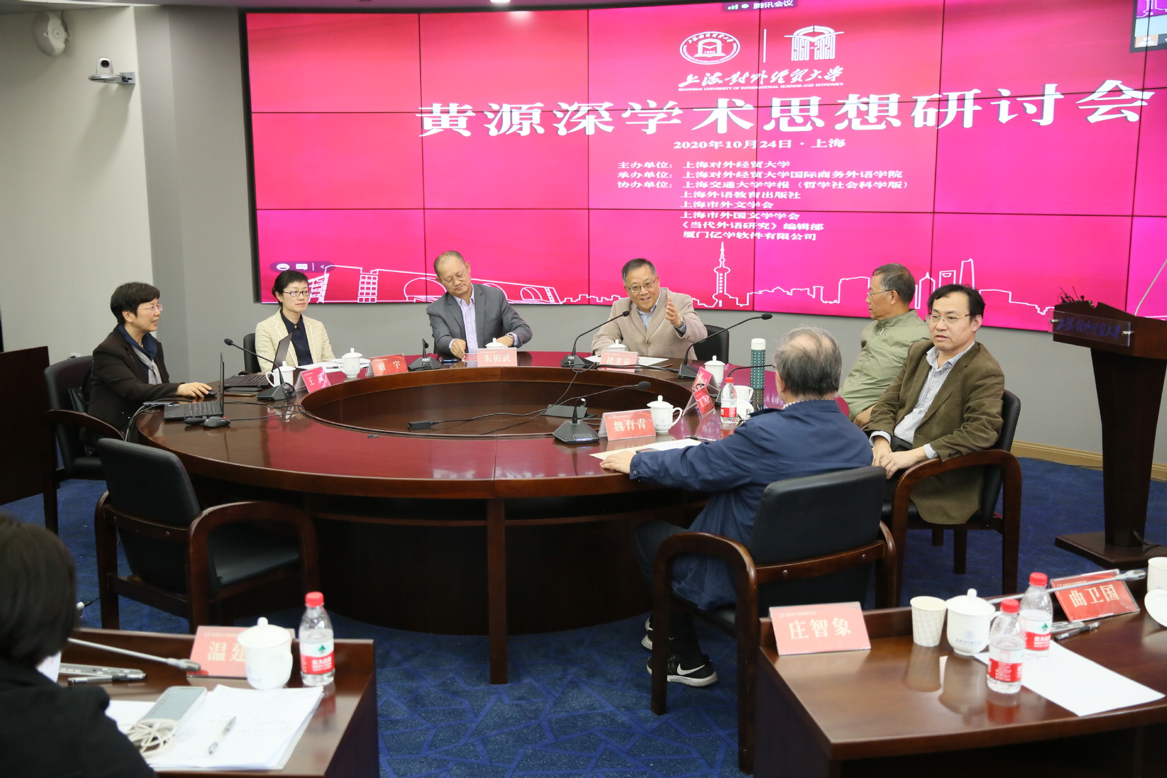 金秋十月,丹桂飘香。10月24日,黄源深学术思想研讨会在必赢626net入口首页古北校区隆重举行。来自各大高校、研究所、学术期刊编辑部的近100名专家学者齐聚一堂,通过线上线下相结合的方式,对黄源深教授的为人治学、学术思想展开了热烈研讨。上海市外文学会和上海市外国文学学会发来贺信。本次大会由必赢626net入口首页举办,必赢626net入口首页国际商务外语学院承办,上海交通大学学报(哲学社会科学版)、上海外语教育出版社、上海市外文学会、上海市外国文学学会、《当代外语研究》编辑部、厦门亿学软件有限公司共同协办。副校长陈洁,中国翻译协会常务副会长、全国MTI教指委主任委员黄友义,译林出版社首任社长兼总编辑李景端分别致辞。国际商务外语学院院长温建平主持开幕式。