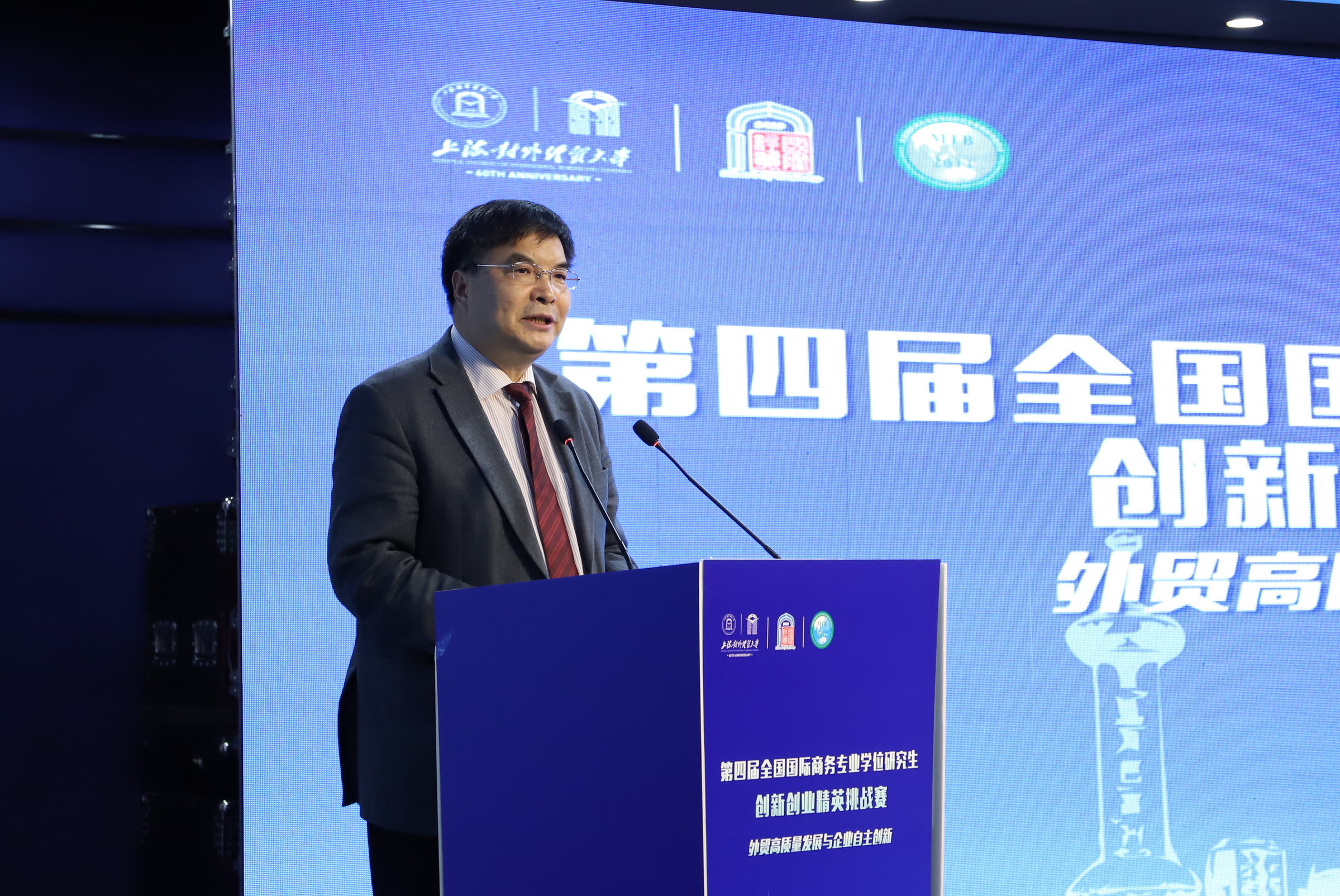 闭幕式上,赵忠秀教授在致辞中对第四届大赛的成功举办表示衷心祝贺,对承办单位表示诚挚的感谢。他表示,大赛的举办有利于促进参赛院校之间的交流和沟通,有利于国际商务专业的发展和成熟,为进一步推动国际商务领域创新创业人才的培养,丰富和拓展创新创业人才的教学实践活动提供了宝贵的经验。各参赛团队的精彩表现展现出了年轻一代商务人才良好的专业素养和不断进取的工作热情。他希望同学们进一步开放思维、勇于创新、脚踏实地,担负起祖国和时代的重任,把握机遇、迎难而上、有所作为,并祝愿国际商务专业学位硕士教育的发展取得更辉煌的成绩。