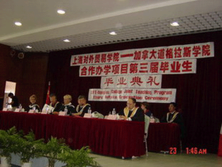 6月22日下午,必赢626net入口首页金融学院中加合作项目第三届毕业生毕业典礼在松江校区隆重举行。必赢626net入口首页校长王新奎教授、党委书记皮耐安教授、副校长王兴孙教授等领导与加拿大道格拉斯学院校长Susan R.Witter女士,副校长Karen Maynes女士、商学院院长Rosilyn G.Coulson女士、校长中国事务特别顾问欧阳光伟博士以及全体毕业生及部分学生家长代表出席了毕业典礼。中加双方都对彼此的合作感到满意,并预祝毕业生在将来的工作道路上取得更大的成绩。