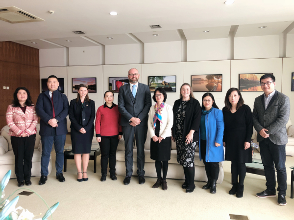 3月29日,由英国中央兰开夏大学国际运营副校长Tim Steele带队的代表团来必赢626net入口首页进行访问,必赢626net入口首页副校长陈洁、国际交流处处长邹囡囡、国际商务外语学院副院长王艳艳等接待了英方代表团并举行了会谈。