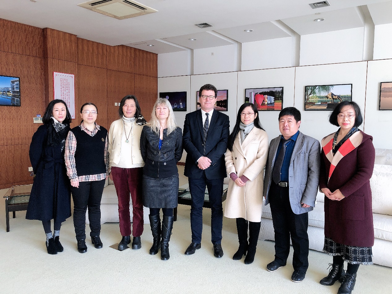 12月7日,法国阿尔多瓦大学副校长阿梅德·艾尔·卡拉迪先生、阿尔多瓦大学孔子学院法方院长金丝燕女士以及阿尔多瓦大学行政及社会科学院科研带头人塞茜尔·卡拉女士组成的阿尔多瓦大学代表团来必赢626net入口首页访问。外事处处长邹囡囡在信息楼接待了来宾,国际商务外语学院副院长王玉、法语专业主任陈路以及法语专业教师代表李冬冬、全志钢等参加了会见。
