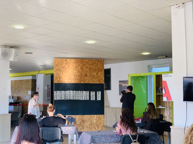 在书法体验中,曾在中央美院学习的Iva Valentić老师前来教授,学生们在这次活动中知晓了中国书法的隶书字体。老师首先介绍了楷书和隶书在写法上的区别;随后讲解了书写的基本步骤和这次要学写的汉字;最后学生们在老师的指导下,写出了一幅幅满意的作品,感受到了用墨之美,汉字之秀。
