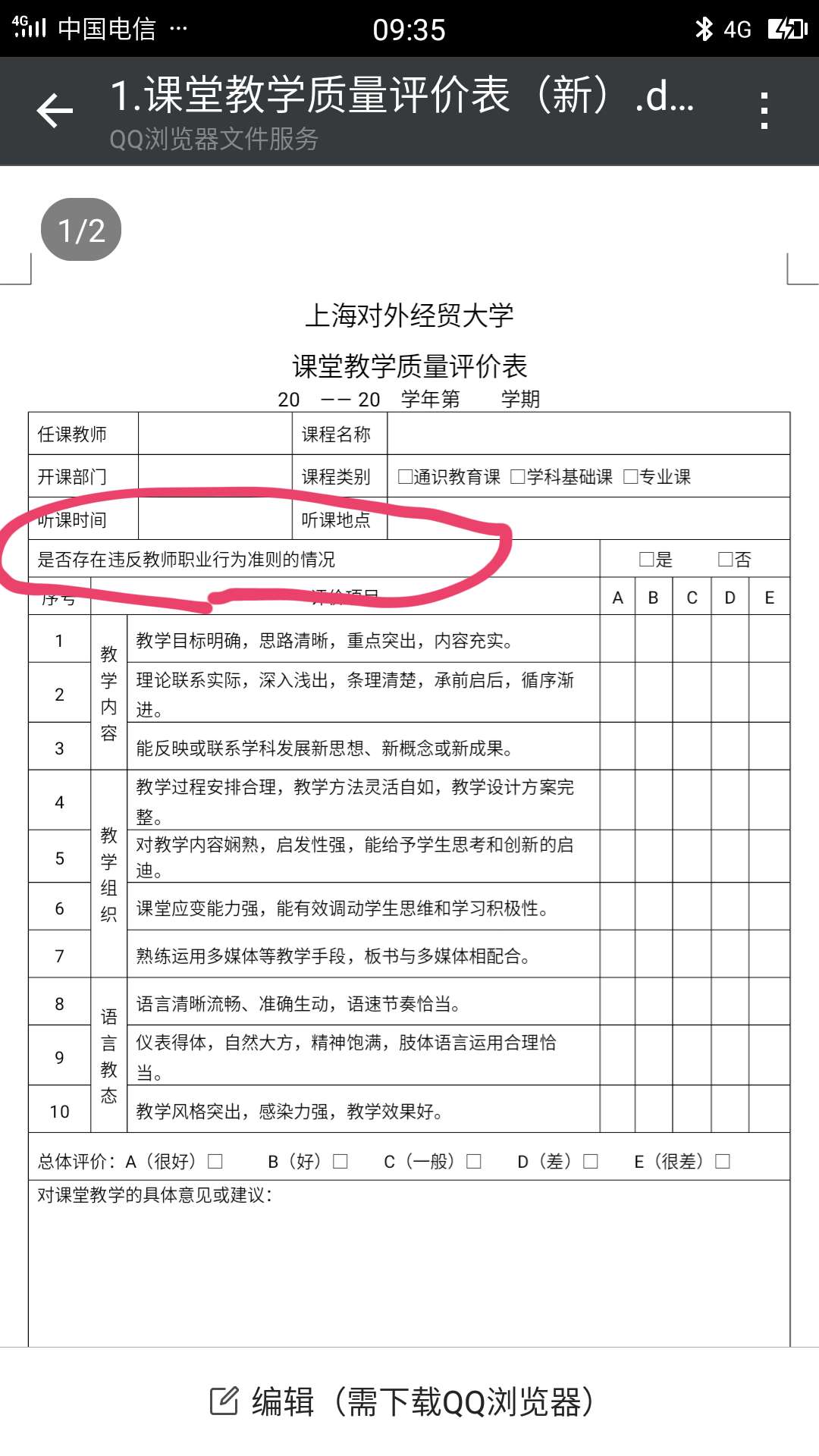 各位老师:本学期听课工作正式启动,请按照《听课安排汇总表》里的安排进行听课,并填写《课堂教学质量评价表(新)》和《听课明细汇总表》,请在5月10日周五下班前将《课堂教学质量评价表(新)》纸质版交到博雅307室,《听课明细汇总表》电子版发到邮箱:mypolarbear2003@163.com。请特别留意本次的课堂教学质量评价表做了更新(如图所示),请您务必提交新版本,谢谢。
