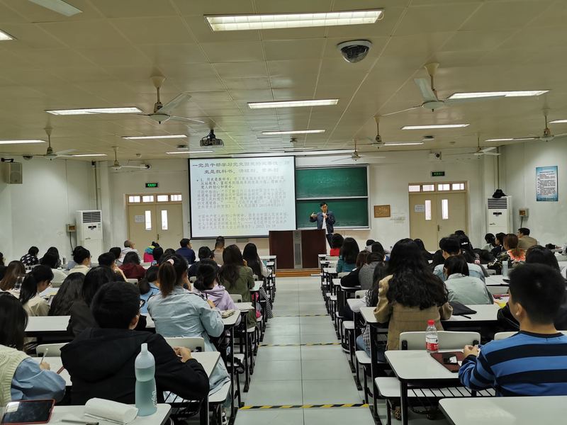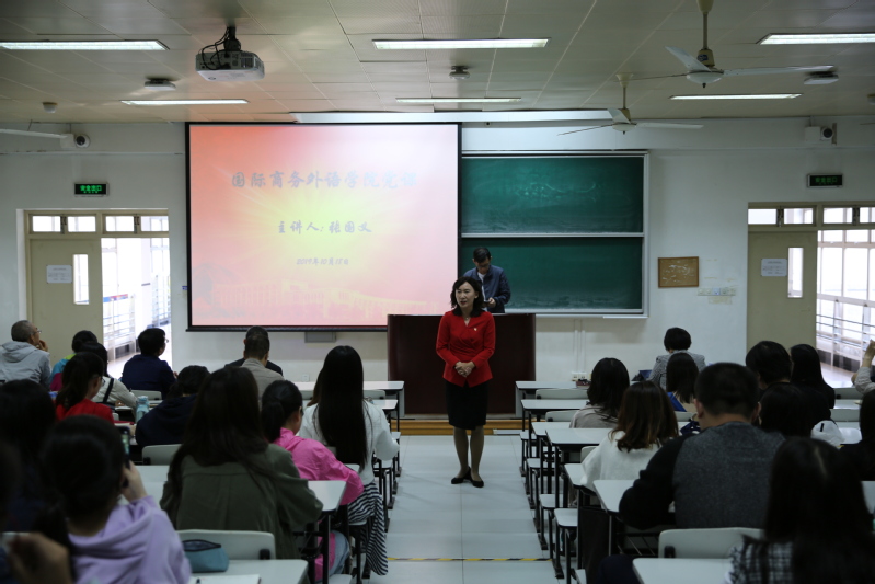 为扎实推进学院“不忘初心、牢记使命”主题教育,引导学院广大师生党员深入学习党史、新中国史,根据学校“不忘初心、牢记使命”主题教育办公室的通知要求,10月18日下午,国际商务外语学院党委邀请马克思主义学院张国义教授面向学院全体师生党员讲了一堂主题为《不忘初心、牢记使命—党员干部要把党史新中国史作为必修课》的党课。本次党课由院党委书记张嵘主持。