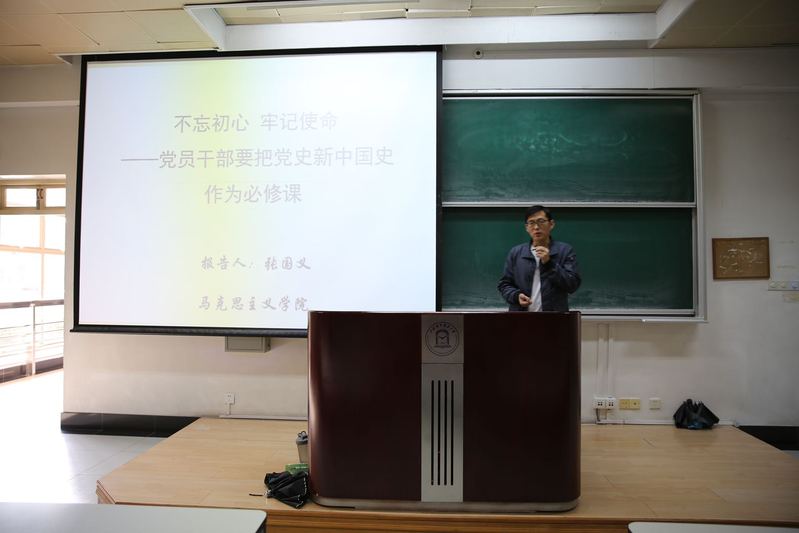张国义教授旁征博引、深入浅出,从党员干部学习党史新中国史的必要性、基本方法、重要路径与主要目标四个方面讲述了党史和新中国史。他总结了新中国成立70年来取得的成绩与宝贵经验,重点介绍了在中国共产党的领导下,中华民族实现了民族独立和国家富强的历史任务。他指出,历史是教科书、清醒剂、营养剂,学习党史国史有利于认识中国从站起来、富起来到强起来的发展历程,理解共产党人的初心和使命;有利于吸取历史经验教训,坚持和平发展,避免颠覆性错误;有利于振奋民族精神,坚定“四个自信”,增强“四个意识”,做到“两个维护”。张国义教授还讲到,学习党史国史必须坚持党性与科学性的统一。他提出广大党员要学习习近平总书记有关历史的论述,坚持运用历史、唯物、辩证的方法进行历史人物、事件的评价,找寻党的初心和使命。