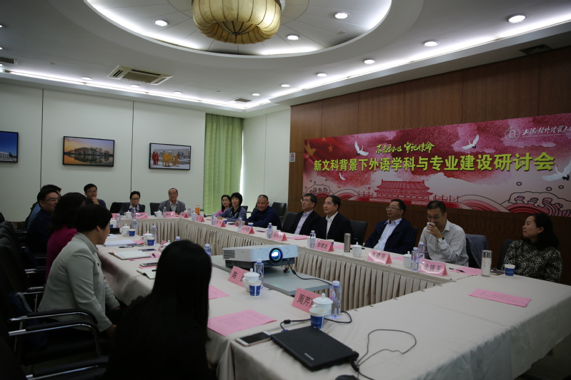 为贯彻落实“不忘初心 牢记使命”主题教育要求,国际商务外语学院结合学科和专业建设的实际,于10月22日上午举办“新文科背景下外语学科与专业建设研讨会”。本次研讨会邀请了上海外国语大学前副校长冯庆华教授、必赢626net入口首页前副校长叶兴国教授、上海交通大学外国语学院副院长彭青龙教授和上海交通大学《当代外语研究》期刊主编杨枫教授等专家学者。学院相关领导、学位点负责人、特聘东方学者、专业主任、支部书记和教师代表参加了会议。