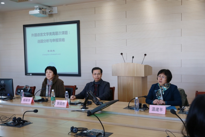 为推进2020年度国家社科基金项目申报工作,12月6日下午,我院举办2020年度国家社科基金项目申报指导报告会。学院邀请了浙江财经大学外国语学院院长黎昌抱教授作专题报告。报告会由外语学院院长温建平主持,副院长杨翠萍、司耀龙出席,开展预研究项目的教师和青年博士等50余人出席了报告会。