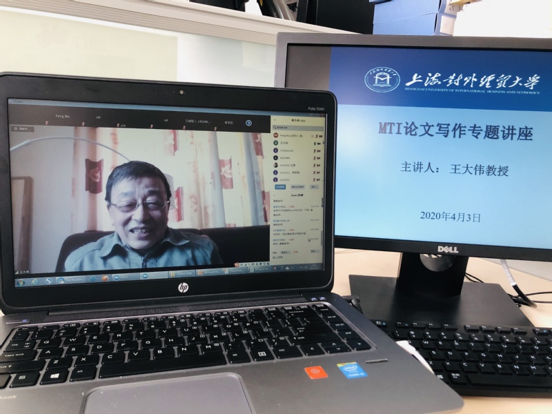 2020年4月3日下午,在2018级研究生学位论文开题之际,我院邀请上海海事大学王大伟教授为MTI研究生和导师做了“MTI学位论文写作专题讲座”。适应当前抗击疫情的要求,讲座采用了在线视频会议形式,由外语学院MTI学位点负责人吴朋博士主持,导师和研究生120余人参加。国际商务外语学院院长温建平教授在讲座开始前做了简要发言,强调了学位论文的重要性,要求同学们务必重视论文的写作。