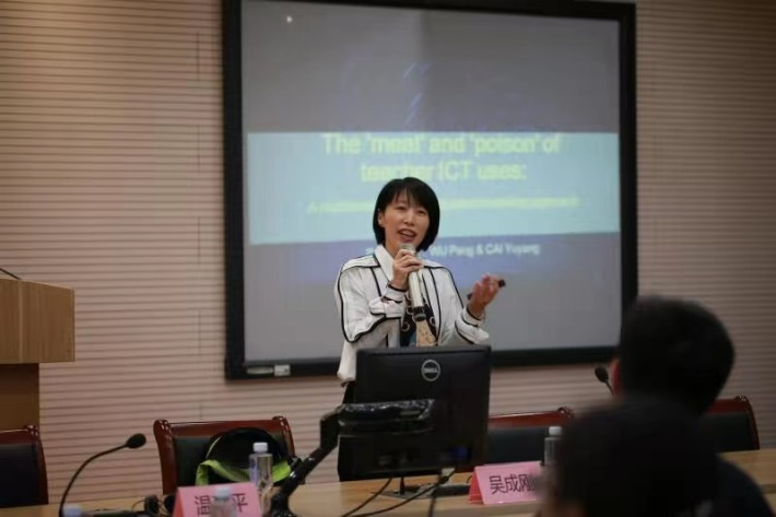 第二场报告中,我院吴朋教授和蔡雨阳教授通过对PISA考试的量化分析,验证了基于TPACK理论提出的假设,即教师使用ICT(信息通讯技术)的模式将会对学生的学习成绩产生不同的影响。两位老师的研究结果表明,教师的interactive ICT use 比functional ICT use能更好地指导学生的学习。此外,研究还发现ICT教学培训对于教师使用ICT教学均有积极影响,与教师年龄、性别及教学经验基本无关。