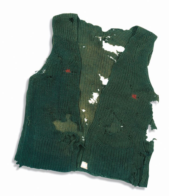 2月7日深夜,林育南、何孟雄、龙大道等24位共产党员和革命志士,在上海龙华被国民党淞沪警备司令部秘密枪杀,其中包括柔石、胡也频、殷夫、李求实、冯铿等左翼革命作家,史称“龙华二十四烈士”。烈士遗体被埋于附近预先掘好的大坑里。1950年上海市民政局在原地挖掘,发现了牺牲的烈士遗骨和遗物,遗物中有此绒线背心。原件现收藏于中共一大会址纪念馆。