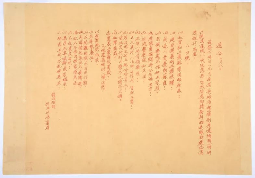 这是中国共产党第一次独立自主运用马克思主义基本原理制定自己的路线、方针和政策,是党的历史上生死攸关的伟大转折。这是中共一大会址纪念馆收藏的红军总政治部通令(进遵义城口号及注意事项)。