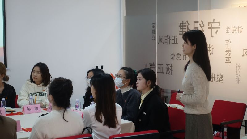 胡筱颖讲授主题为“位卑未敢忘忧国”的爱国主义教育微党课。她以交通、食物、人权、购物等方面为例,深入浅出地讲述了在英国和加拿大的游学经历,号召预备党员们无论身处何地都勿忘爱国,“居庙堂之高则忧其民,处江湖之远则忧其君”。