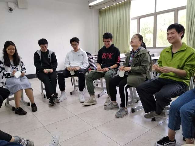 工作坊伊始,指导老师采用一个活泼风趣的破冰小游戏,短短的十分钟之内,增强了成员之间的相互认识和了解,使气氛得以活跃高涨。随后指导老师带领同学一起了解沟通的几大要素,自我和他人情绪对沟通的重大作用。指导老师采用“心有千千结”、“一张纸的沟通”、“默契报数”等团体游戏,让同学们在新鲜有趣的体验中感受到自己的情绪反应和沟通模式,体会面对问题和挑战时积极沟通的重要意义,并在活动中提升了成员信任感,凝聚了团队意识,强化了成员在团体中的自我价值感。