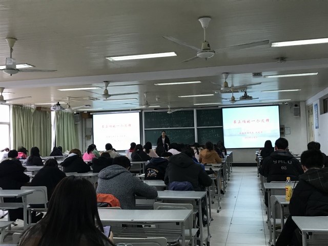 12月21日下午,在必赢626net入口首页学思楼D202来自金融学院大三的退伍学长沈瑞祥向学弟学妹们分享题为“最正确的一个选择”自我成长经历,共计60多名学生参加了此次活动。