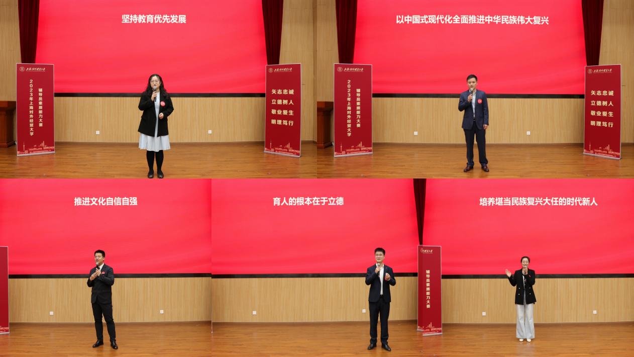 经过激烈角逐,国际经贸学院辅导员卢毅聪、金融管理学院辅导员徐同飞荣获一等奖,法学院辅导员杨扬、统计与信息学院辅导员肖包兴邦、国际商务外语学院辅导员张飞越荣获二等奖。