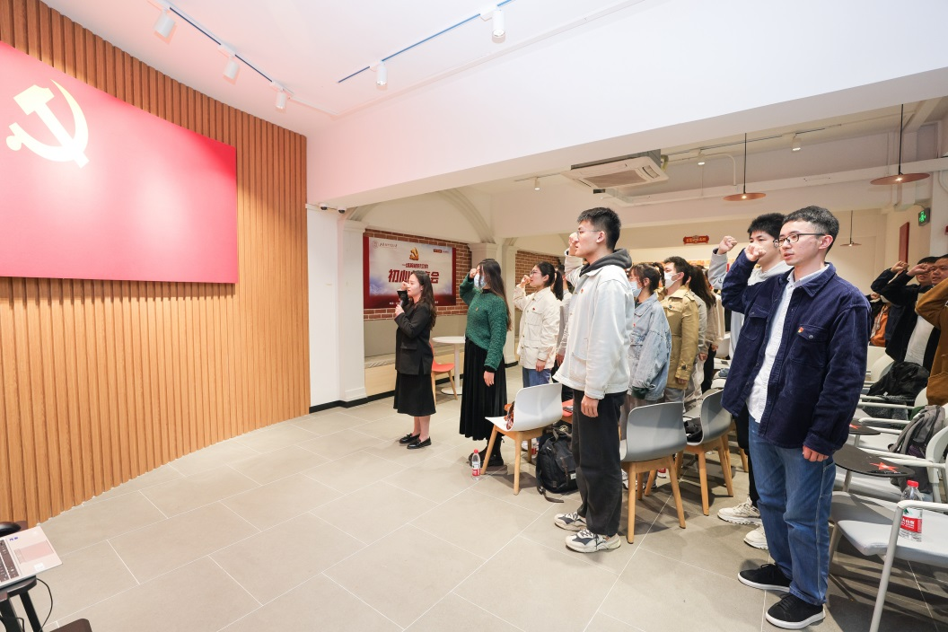 活动现场,全体师生党员在上海市“百个学生样板党支部”支部书记方馨的带领下重温了入党誓词,以庄严的承诺再次明鉴了入党初心。