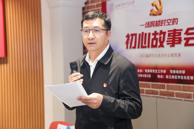 本次活动是党委研工部、党委组织部精心为毕业生党员准备的一份毕业礼物。党委组织部部长陈加林赠言毕业生:“坚持真理、坚守理想,做一个信念坚定的时代新人;立足时代、顺应时代,做德才兼备的有为青年;志从报国、胸怀天下,做上经贸大精神品格的践行人;仰望星空、脚踏实地,珍惜新时代赋予的机会和平台,把青春的奋斗融入到国家和民族的事业中。”党委学(研)工部部长缪韵笛说:“这场微党课既是一场深刻的回望,初心跟着故事被擦亮;也是一场温暖的守望,把毕业生党员凝聚在一起,共同携手集结出发;更是一场聚力的展望,坚定理想信念,让青春有初心可回溯,有岁月可回首,有前程可奔赴。”