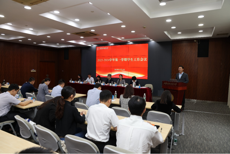 10月13日上午,为进一步做好上半年工作经验和成果总结,明确下一阶段工作重点和方向,进一步推动思想政治教育工作的高质量发展,2023-2024学年第一学期学生工作会议在信息楼503会议室举行。校党委副书记、副校长祁明出席会议,党委学(研)工部、校团委负责人,各学院党委(党总支)副书记以及全体学工教师参加会议。会议由创业学院副院长高伟主持。