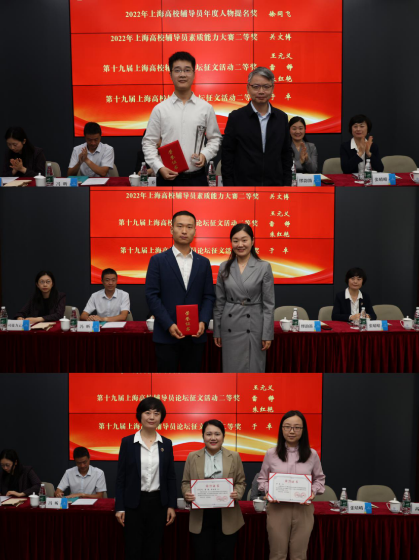 会议对在2022年度上海高校辅导员队伍建设月系列活动中取得突出成绩的优秀个人进行了表彰。
