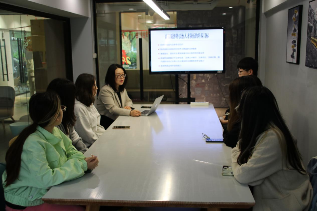 钟欣老师通过法律案例的引入让与会同学对法学专业知识在实际中的运用有了进一步的了解和认识,她紧接着围绕“高素质涉外法治人才的培养”这一专题,从知识体系、综合能力、基本素养等不同角度给同学提出了学习建议。最后,她还建议学生把握重要时间节点,做好大学的生涯规划,不断深化专业学习,提升核心竞争力。