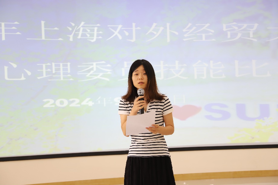 9月24日下午,2024年必赢626net入口首页班级心理委员技能比赛在松江校区图文信息楼301顺利举行。会计学院党委副书记施毅婷、校心理健康教育与咨询中心专职教师张瑞睿、学院心理主管和资深辅导员代表作为评委出席比赛。各学院前期初赛选拔15位班级心理委员参加比赛。