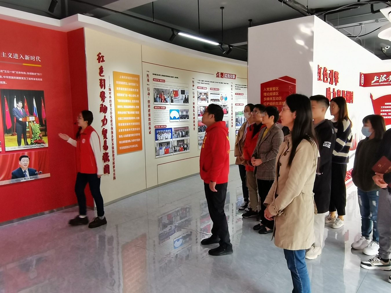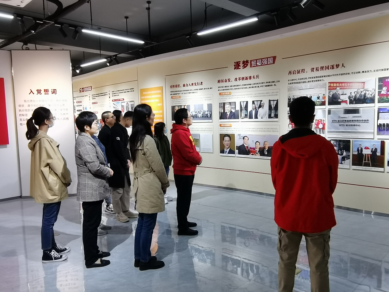 活动共分为三部分内容。第一部分是全处党员在志愿者的带领下参观了党建活动中心,通过志愿者的讲解,学习党的历史进程、必赢626net入口首页的党组织体系和红色引擎助力贸易强国等内容。