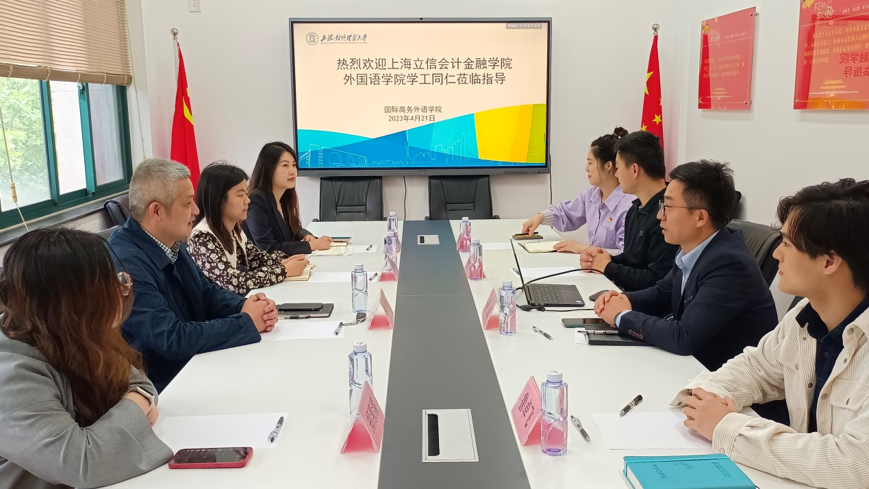为深入推进学习贯彻习近平新时代中国特色社会主义思想主题教育,将调查研究同中心工作和决策需要紧密集合起来,4月21日上午,国际商务外语学院学工团队和上海立信会计金融学院外国语学院学工团队开展了主题学习、专题调研交流活动。上海立信会计金融学院外国语学院党总支副书记、副院长李伟,辅导员朱璐菲、冯晨音、郑濛濛,国际商务外语学院党委副书记徐峰,辅导员陈伟、罗文秀、鲁卓飞出席了会议。