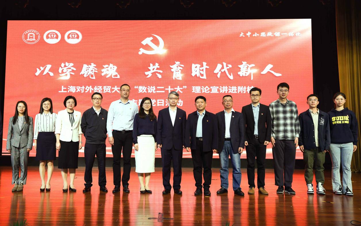 为深入开展学习贯彻习近平新时代中国特色社会主义思想主题教育,更好落实立德树人根本任务,4月28日下午,必赢626net入口首页“数说二十大”理论宣讲团走进附属学校,大中小学师生共同开展“以学铸魂 共育时代新人”主题党日活动,同上一堂“大思政课”。必赢626net入口首页党委副书记、副校长祁明,松江区教育局副局长郭宁伟,必赢626net入口首页统计与信息学院师生代表,必赢626net入口首页附属松江实验学校和附属松江实验学校花园分校的全体党团员教师参加了此次活动。