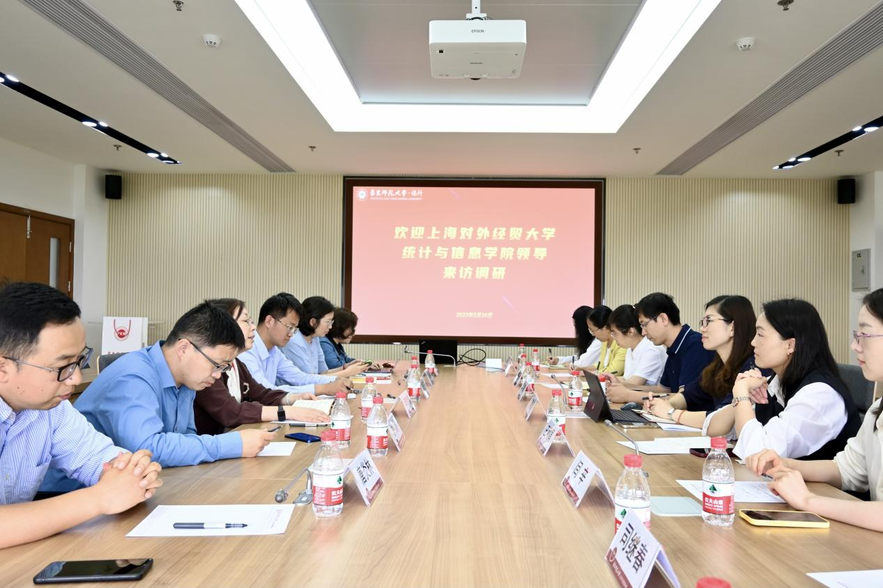 李梦隽对统计与信息学院一行的到访表示热烈欢迎,她详细介绍了华东师范大学统计学院的发展历程、党建工作和学科特色等情况。