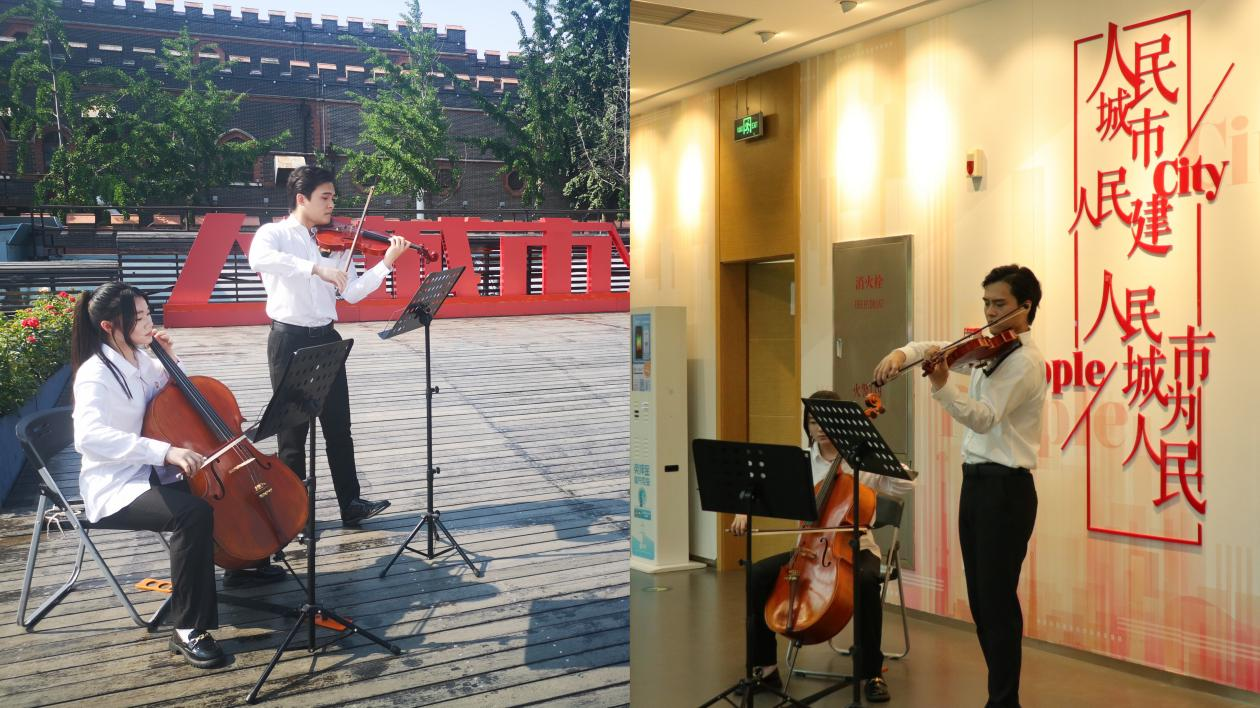 此次主题实践通过将党建与美育深度融合,发挥了文化艺术以文化人、以美育人的独特作用。在“人民城市人民建,人民城市为人民”地标处、在“初心·启航”展厅前,国际商务外语学院鲁卓飞老师和叶周靖同学联袂展示了《我和我的祖国》《东方红》等二重奏,以悠扬的琴声赞颂了“人民城市”的价值理念和“工业绣带”变“生活秀带”的崭新风貌,也引来了其他参展观众的围观和共鸣。