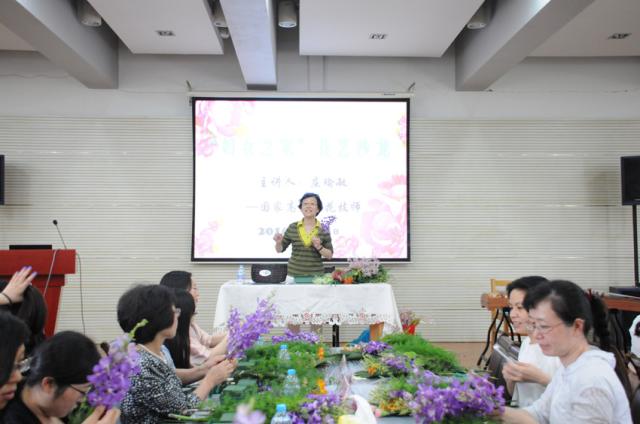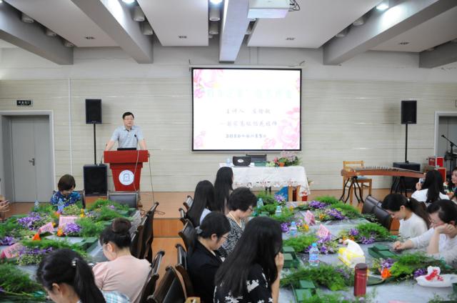 国家高级插花技师庄瑜敏应邀作为本次活动的主讲老师。庄老师凭借深厚的花艺底蕴以及多年的插花经验,首先从花的文化、中西插花的不同特点和插花技巧等方面,生动形象的给参加培训的教职工们普及了理论知识;之后,庄老师仔细的为教职工们示范插花作品的步骤,让教职工们跟着学做,并耐心的指导教职工们完成了插花作品。校工会女工委还邀请了钢琴以及古筝演奏者在插花过程中伴凑,增添了浓厚的艺术氛围。