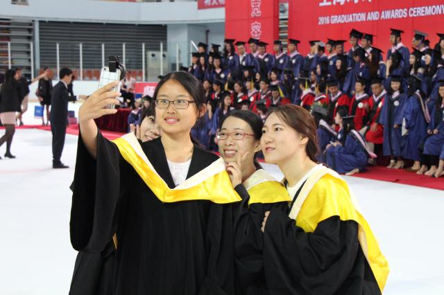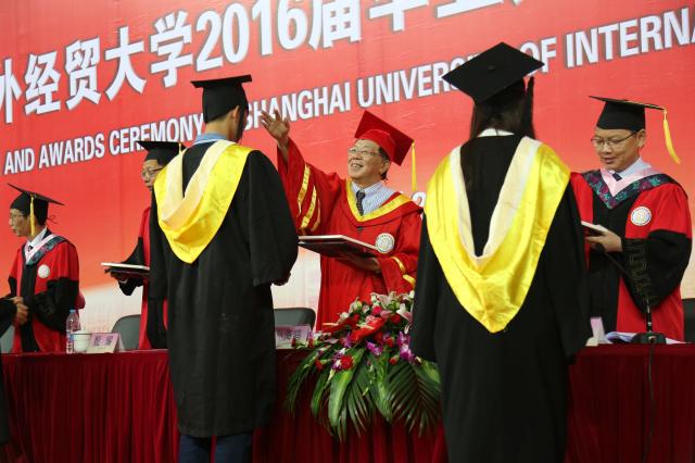毕业典礼前,校舞蹈团和嘻哈社带来舞蹈《那时花开的季节》《逐梦》。学校为全体毕业生精心制作的微电影《盛放Ⅱ》中,入学时光、文汇路、图书馆、思源湖畔一一掠过,大家共同回顾了上经贸大的湖光树影与四度青春岁月,毕业生们沉浸在对校园的无尽回忆和留恋中。7名毕业生代表分别向大学期间给予他们关心和帮助的家长、老师、员工、同学献花,表达了他们的感恩之情。微信墙上,同学们互赠祝福,依依惜别。“毕业快乐”“难忘四年”“感谢有你”“前程似锦”等感言凝结了同学们临别之际对母校的留恋,对同窗的不舍以及对今后人生的期待。2016届毕业典礼在《毕业歌》的合唱中落下了帷幕,承载着上经贸大情怀的2016届毕业生将在人生的新起点扬帆起航。