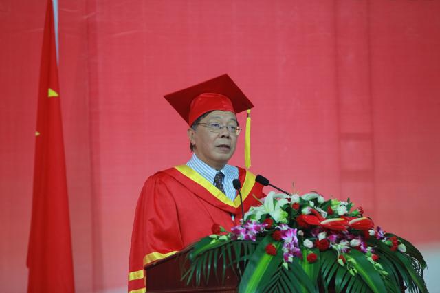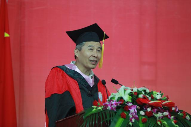 孙海鸣在致辞中首先代表学校热烈祝贺全体毕业生圆满完成学业。临别之际,孙校长和毕业生分享了三个人生体会的关键词——梦想、责任和感恩。他说,一是要不忘初心,以持之以恒的精神成就自己的梦想,将自己的梦想的实现与服务国家、社会、时代相结合,在成就自己梦想的同时为社会、国家做出贡献;二是要勇担责任,以敢为人先的锐气书写人生的精彩,希望同学们不会因物欲横流而改变真诚,不会因困难挫折而放弃责任,做一个对家庭负责、对工作尽责、对社会、对国家有担当的人;三是要学会感恩,以包容的心态创造生活的美好,学会感恩,用感恩的心对待家人、工作、社会,用自己的实际行动去担当我们的责任。最后他希望同学们勇立时代潮头,追随梦想前行,须臾不忘对国家和民族的担当,须臾不忘对社会和家庭的责任。