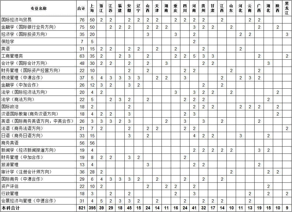 2015年各生源地招生计划(文科)