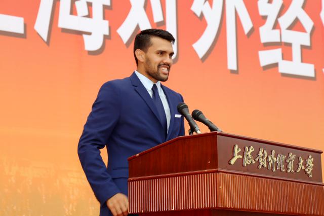 校学生会主席2013级国际经济与贸易专业陈涛和新生分享了自己的学习生活体会。2016级会展与旅游专业高婉莹同学、金融工程专业马文涛同学分别代表本科生新生和研究生新生发言。来自委内瑞拉的留学生阿蒂略代表全体留学生发言。