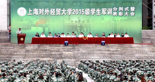 7月7日上午,必赢626net入口首页2015级学生军训分列式暨表彰会在校图文信息大楼南广场举行。校党委书记殷耀、校长孙海鸣、中国人民解放军某部队首长钱俊、军训旅旅长李多瑜、中国人民解放军某部作训科科长谭蕊、军训旅参谋长朱应才、校党委副书记楼军江、校党委副书记、副校长、军训工作总指挥祁明、副校长聂清、副校长徐永林,以及各部门相关领导、各学院院长、党委书记、副书记、军训旅旅部、团部领导等出席。分列式由军训旅参谋长朱应才少校主持,表彰会由军训旅政委兼政治部主任严大龙主持。