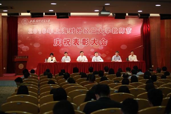 金秋时节,秋风送爽。新学年伊始,学校在喜迎2016级3000多名新生之时,迎来第32个教师节。9月9日下午,主题为“奋发有为,描绘十三五蓝图;锐意进取,建设高水平大学”的2016年教师节庆祝表彰大会在松江校区信息楼507报告厅隆重举行。校党委书记殷耀,校长孙海鸣,校党委副书记楼军江,校党委副书记、副校长祁明,副校长陈洁、徐永林出席会议。2016年度各类奖项获得者、离退休教职工代表、从事教育工作30年教职工、2016新进教职工,以及各学院、各部门领导和教师、学生代表参加表彰会。会议由陈洁主持。