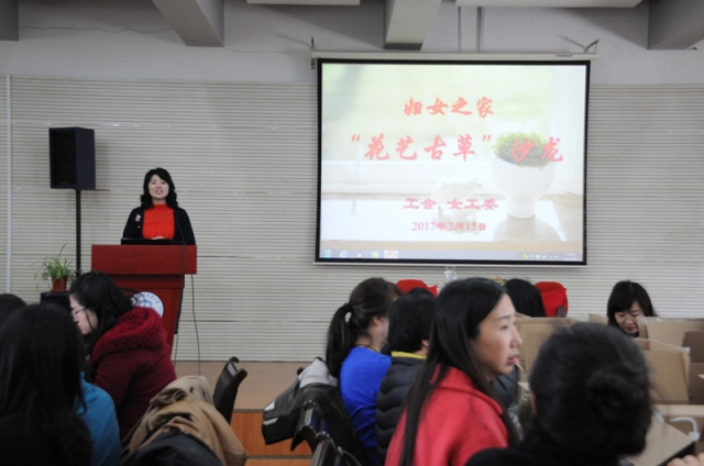 为丰富女教职工的精神文化生活,进一步激发女教职工“做智慧女性&建妇女之家&创美好生活”的热情,不断提高女教职工的职业幸福感,2017年3月15日校工会、女工委在工会大会议室举办了“妇女之家-花艺古草”沙龙活动,工会常务副主席郭新顺致辞,女工委副主任应竹主持活动,来自18个工会90多名女教职工代表及相关女领导代表参加了活动。