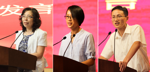 从教30年教师代表、马克思主义学院党总支书记秦淑娟,科研标兵、统计与信息学院范彩云,全英语教师“教学质量奖”获得者、法学院吴晓锋先后作交流发言。秦淑娟老师交流了从教30年的心路历程,最后她深情地说,“选择教师职业,人生无悔;致力教书育人,初心永恒。”范彩云老师充满激情地结合个人科研工作谈了三点体会,“因兴趣而产生梦想;持之以恒的努力;广泛而有效的交流合作。”吴晓锋老师回顾了他英语学习的启蒙历程,感恩他的老师以及学生,感恩学校坚持英语教学的传统。三位老师的发言让与会师生深切感受到了作为高校教师的荣誉感、责任感、获得感与幸福感。