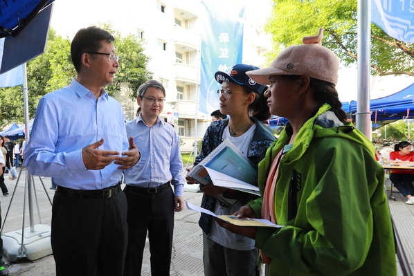 当天一早,校党委书记殷耀,校党委副书记、副校长祁明等领导就来到学生社区了解报到情况,他们与新生、新生家长及迎新师生亲切交谈,对学院及各部门的迎新工作给予了肯定。当殷书记一行来到绿色通道摊位时,两位西藏学生正在办理绿色通道入学手续,殷书记代表学校亲手送上了贫困新生入学助学金和爱心物资,并叮嘱不要有后顾之忧,要安心学习,学校会是学生坚强的后盾。