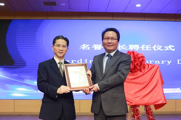 仪式上,学校聘请周汉民担任贸易谈判学院名誉院长,朱国宏为周汉民颁发了名誉院长证书。