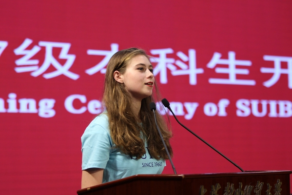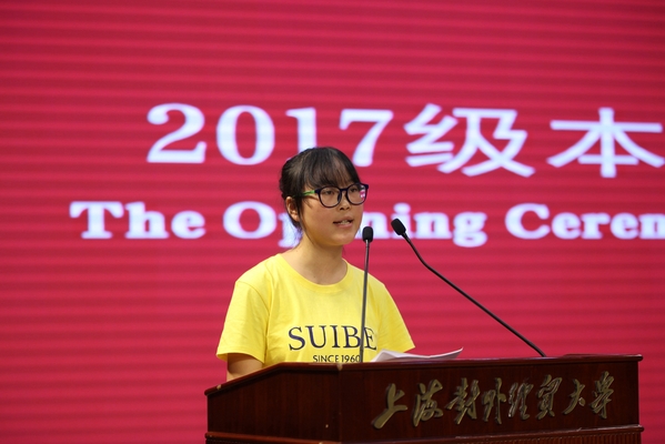 校学生会主席宋欣逸和新生分享了自己的学习生活体会。会计学院新生全额奖学金获得者覃玉洁同学代表本科生新生发言。来自拉脱维亚的留学生奥珂萨娜代表全体留学生发言。
