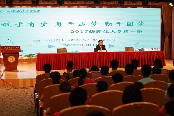 1014日下午,校党委书记殷耀给2017级本科新生上“大学第一课”:敢于有梦、勇于追梦、勤于圆梦——大学四年怎样度过。学工部负责人、各学院副书记和辅导员与2000多名2017级本科新生一起聆听了“大学第一课”。