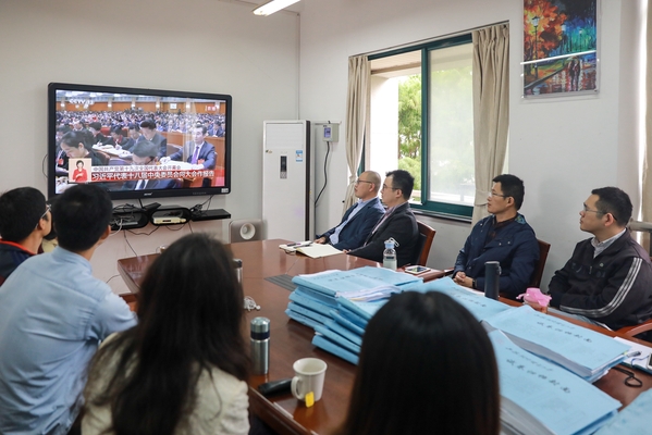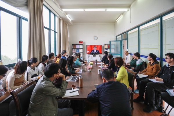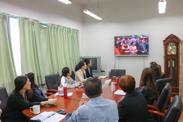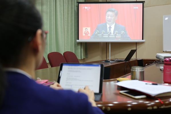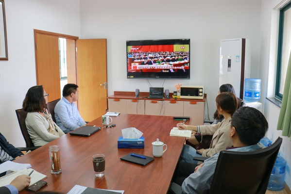 校领导殷耀、朱国宏、祁明、陈洁、徐永林以及各部门负责人、各教学单位负责人、教师和学生代表等100余人在松江校区信息楼503会议室主会场观看了开幕会现场直播,各教学单位、各部门分别在松江和古北两个校区的14个分会场组织近千名师生观看了现场直播。开幕会在庄严的国歌声中拉开帷幕,必赢626net入口首页直播会场师生全体起立,一同高唱国歌。随后,师生们聚精会神地聆听了习近平总书记代表中国共产党第十八届中央委员会向大会所作题为《决胜全面建成小康社会,夺取新时代中国特色社会主义伟大胜利》的报告。在三个半小时的观看过程中,会场秩序井然,师生们认真做着笔记,听到精彩之处,师生们情不自禁地鼓掌。开幕会结束后,师生们对党的十九大胜利开幕和习近平总书记作的报告给予最热烈和经久不息的掌声。