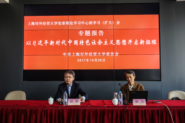 为在全校范围内迅速掀起学习宣传党的十九大精神的热潮,帮助师生深入学习和准确领会党的十九大精神,10月26日下午,学校党委在松江校区信息楼503会议室召开党委理论学习中心组学习(扩大)会,邀请中国人民解放军国防大学政治学院博士生导师、上海市委宣讲团成员孙力教授作题为《以习近平新时代中国特色社会主义思想开启新征程》的专题报告。学校党委理论学习中心组成员和全体中层干部参加学习会,会议由党委副书记、副校长祁明主持。