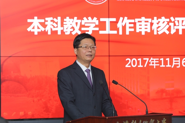 殷耀指出,学校领导班子高度重视迎评促建工作,各教学单位和职能部门突出问题导向,对照审核评估的指标要求,认真查摆问题、系统梳理、抓住关键、找准差距、弥补短板,确保审核评估20字方针落到实处。经过两次审核评估工作的前期指导,学校正式迎来了各位专家进校开展实地考察。他真诚地恳请各位专家全面深度考察学校,精心指导,帮助学校进一步找准问题、明确整改方向和目标,完善学校本科教学工作质量保障和监控体系,对学校本科教学工作以及学校建设与发展提出更多的宝贵意见和建议。殷耀表示,当前,学校正在深入学习宣传贯彻党的十九大精神和习近平新时代中国特色社会主义思想,新时代、新形势、新任务对学校人才培养和办人民满意的教育提出了更高的要求,学校一定会以党的十九大精神和习近平新时代中国特色社会主义思想为根本遵循,以本次审核评估为保障和推动学校综合改革的助推器,根据专家反馈的意见和建议,精心研究制定整改方案,以积极务实的心态抓好后续整改工作,更加坚定有力地推动实现学校“十三五”时期本科人才培养目标。