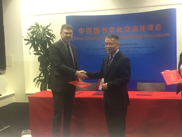 当地时间11月7日,克罗地亚国际图书展在萨格勒布贸易中心举行,萨格勒布大学孔子学院参加本次书展和中克图书文化交流座谈会。中国驻克罗地亚大使胡兆明、克罗地亚文化部长代表杜布拉卡(Dubravka Duric)、萨格勒布大学校长博拉斯(Damir Boras)、中国图书进出口总公司副总裁林丽颖、孔子学院中方院长孟维亮、克方院长尤拉克(Kreso Jurak)出席此次活动。